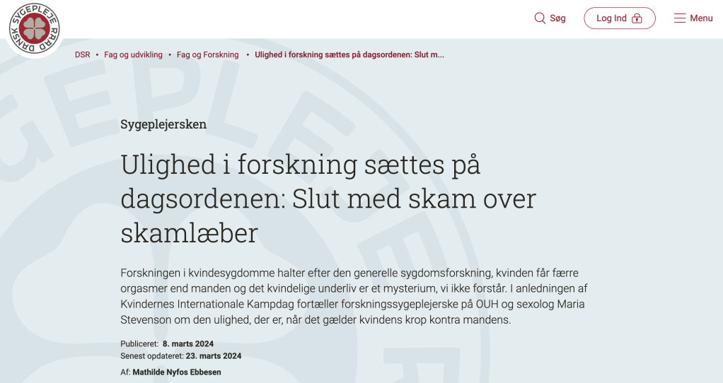 Sygeplejersken: Uligehed i forskning sættes på dagsordenen: Slut med skam over skamlæber